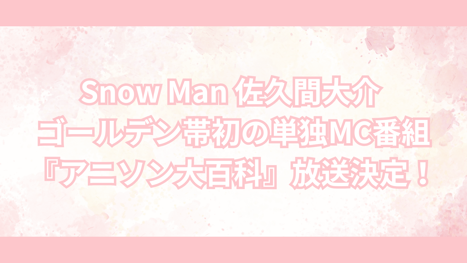 メディア情報Snow Man佐久間大介が、ゴールデン帯初の単独MCを務めるバラエティー番組『アニソン大百科』が、19日午後7時からTBSで放送されることが決定しました。