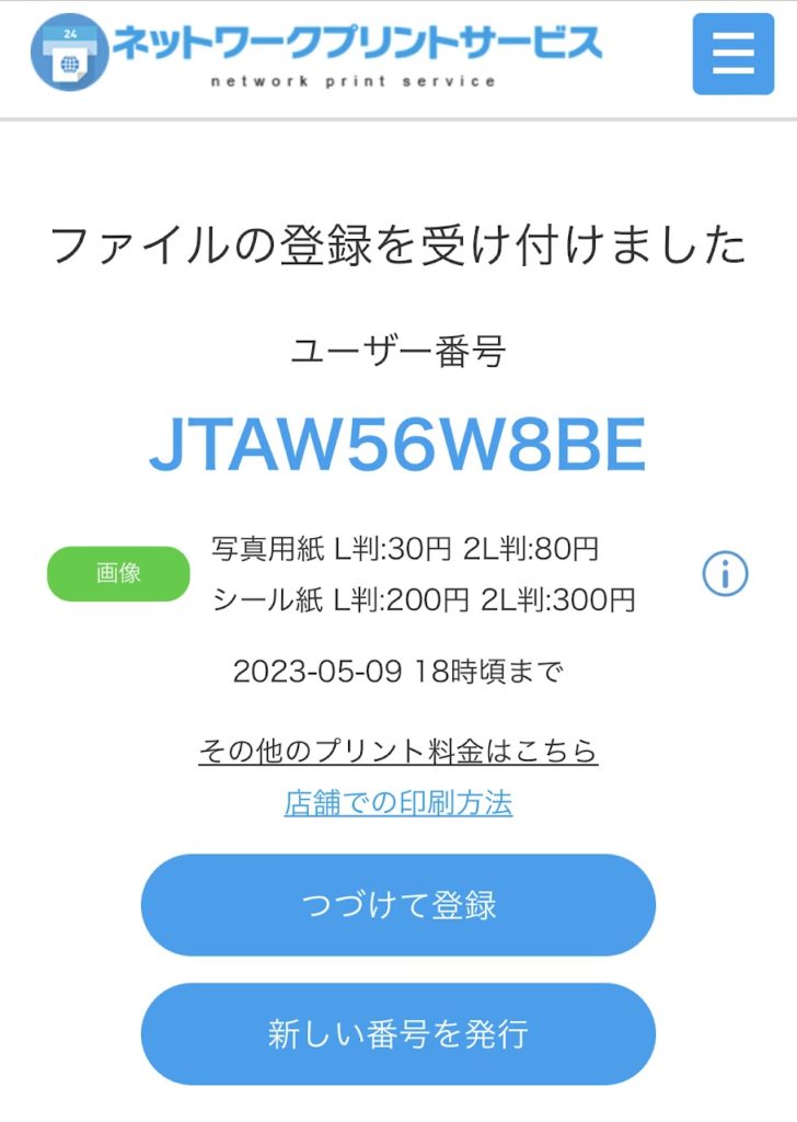 ファイルを登録したらユーザー番号が出てくるのでスクショしておきます。