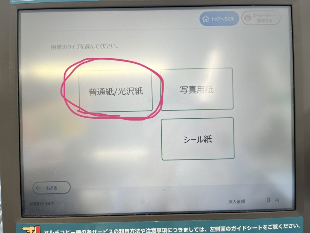 ユーザー番号を入力、普通紙/光沢紙を選択。
