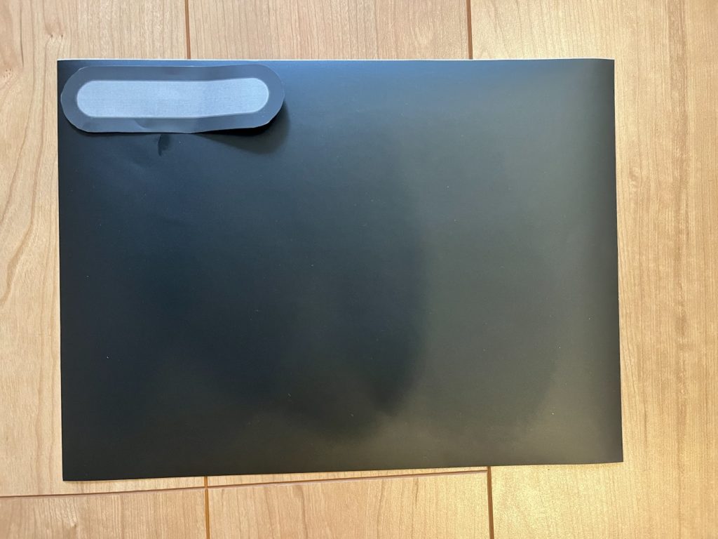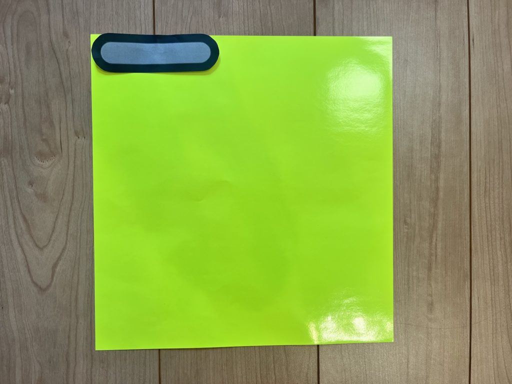 切った黒画用紙の上に、カッティングシートの文字を乗せて、カッティングシートのシートをはがすとシールになってるので貼り付けます。
