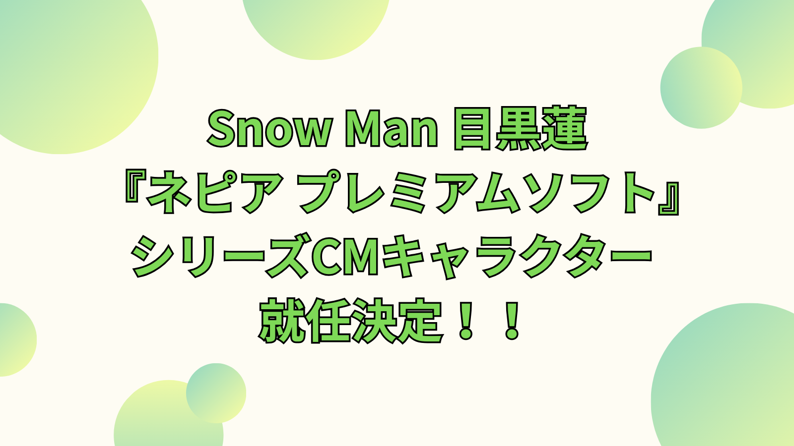 Snow Manの目黒蓮が4月15日に王子ネピア株式会社のティシュやトイレットロール『ネピア プレミアムソフト』シリーズのCMキャラクターに起用されたことを発表。