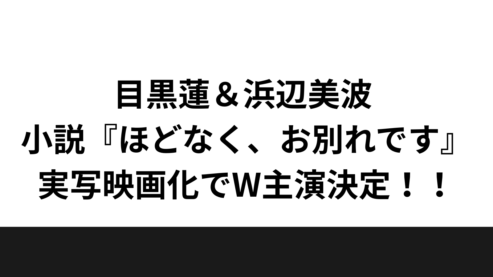 Snow Manの目黒蓮が俳優の浜辺美波と、来年2月に公開される映画『ほどなく、お別れです』でW主演を務めることが決定しました。映画は2026年2月6日公開です。