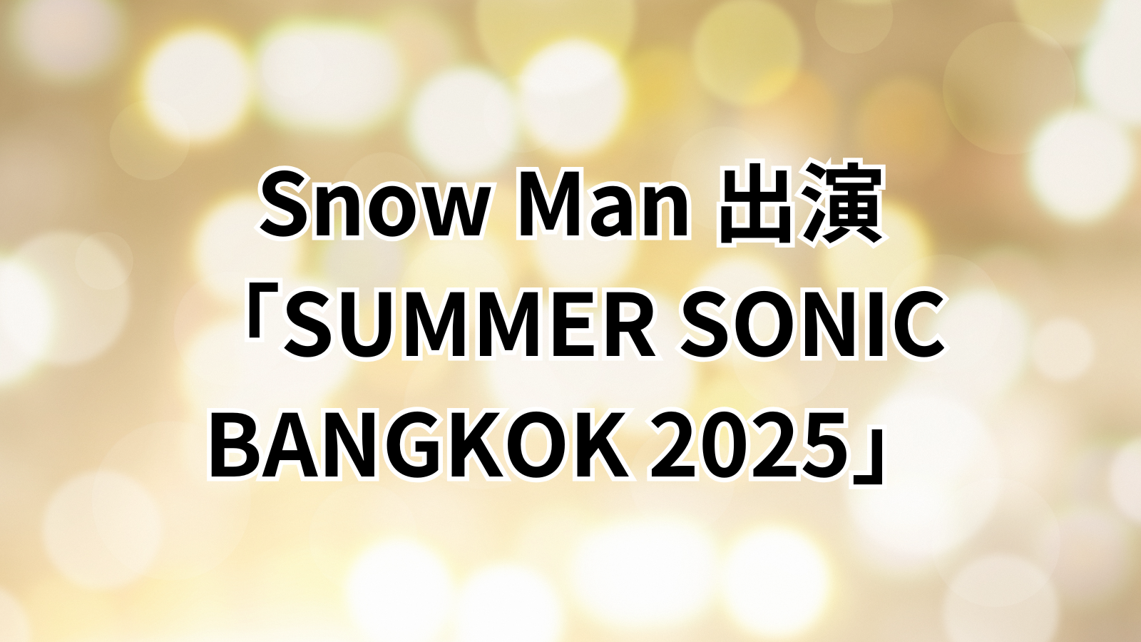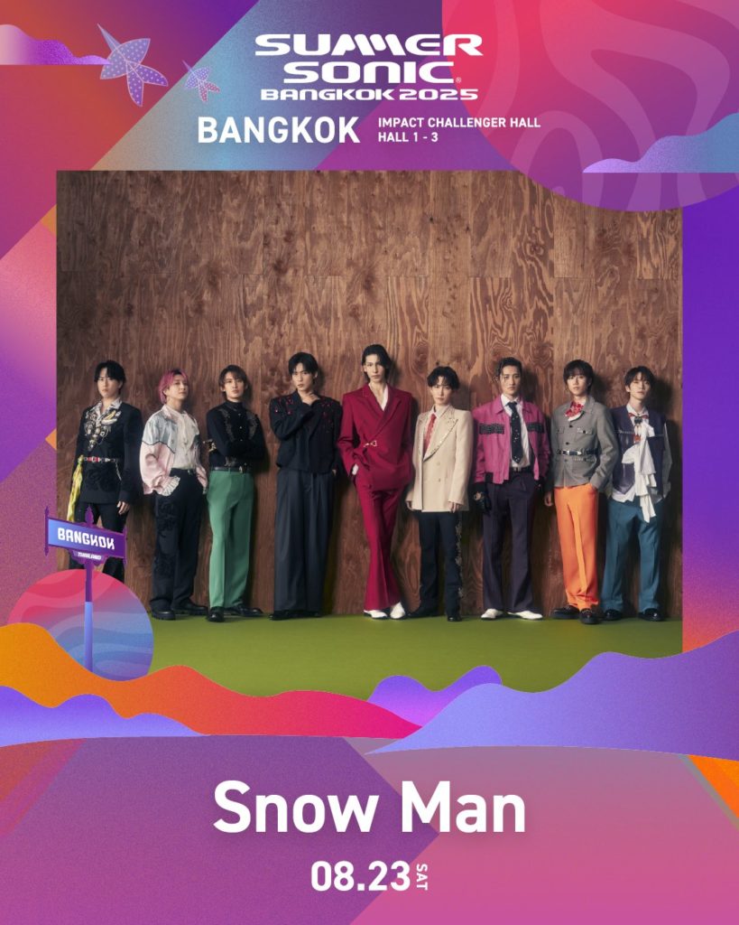 Snow Man 出演「SUMMER SONIC BANGKOK 2025」 公演/コンサート X LINE コピー 2025.06.18 Snow Man出演日:2025年8/23(土)会場:IMPACT Challenger Hall 1–3 チケット先行販売期間:6月30日 (23:59) まで ※完売次第終了GA 1日券:3,800バーツVIP 1日券:8,000バーツチケット受付サイトはコチラ 宿泊、交通 ・楽天トラベル タイ旅行はコチラ・楽天トラベル 駅名から探す・楽天トラベル パックツアーから探す・じゃらん・Yahoo!トラベル