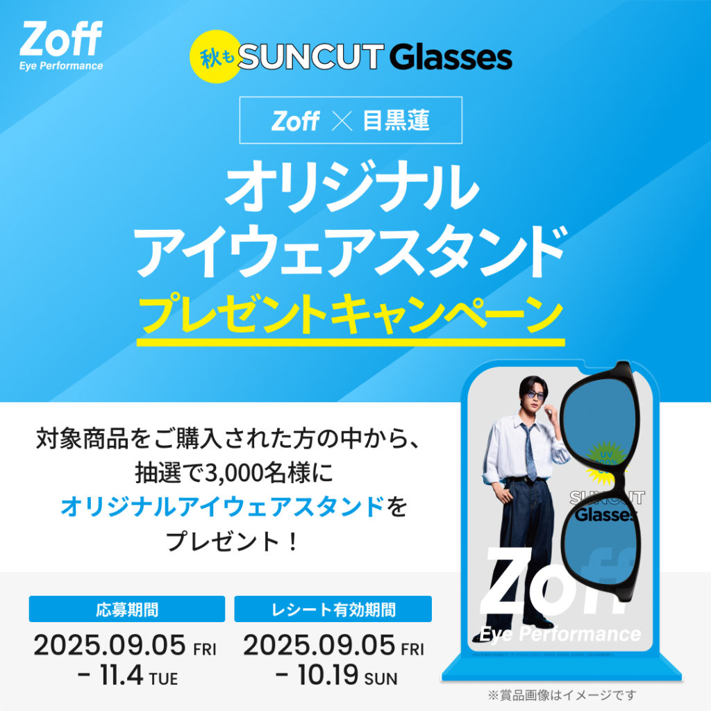 秋の新広告クリエイティブ公開を記念し、「Zoff×目黒蓮 オリジナルアイウェアスタンド」が抽選で3,000名に当たるキャンペーンを実施!