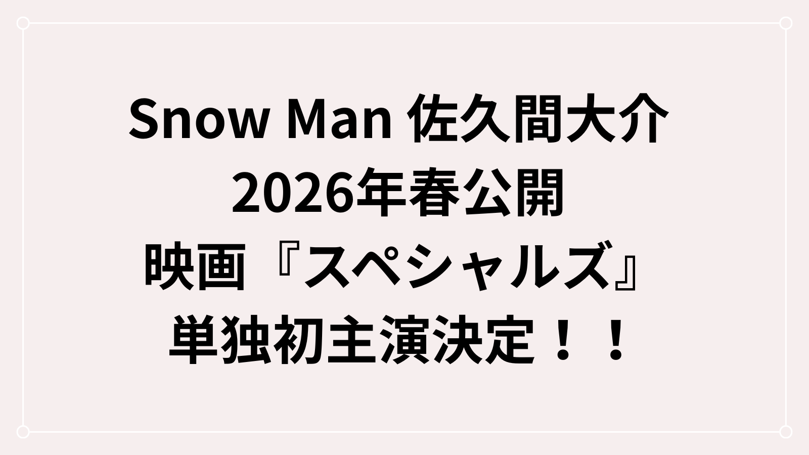 Snow Manの佐久間大介が、2026年3月6日に公開される映画『スペシャルズ』の主演を務めることが発表されました。