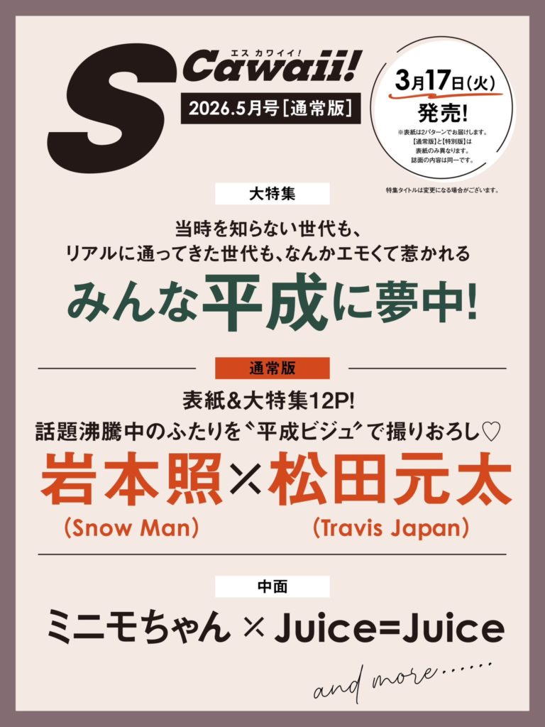 岩本照×松田元太 表紙 3/17発売「S Cawaii! 2026年5月号」 岩本照 X LINE コピー 2026.02.20 《表紙&大特集12P》岩本照×松田元太ドラマ『カラちゃんとシトーさんと、』 予約受付中 楽天・Amazon・タワレコ・セブンネット・Yahoo!ショッピング