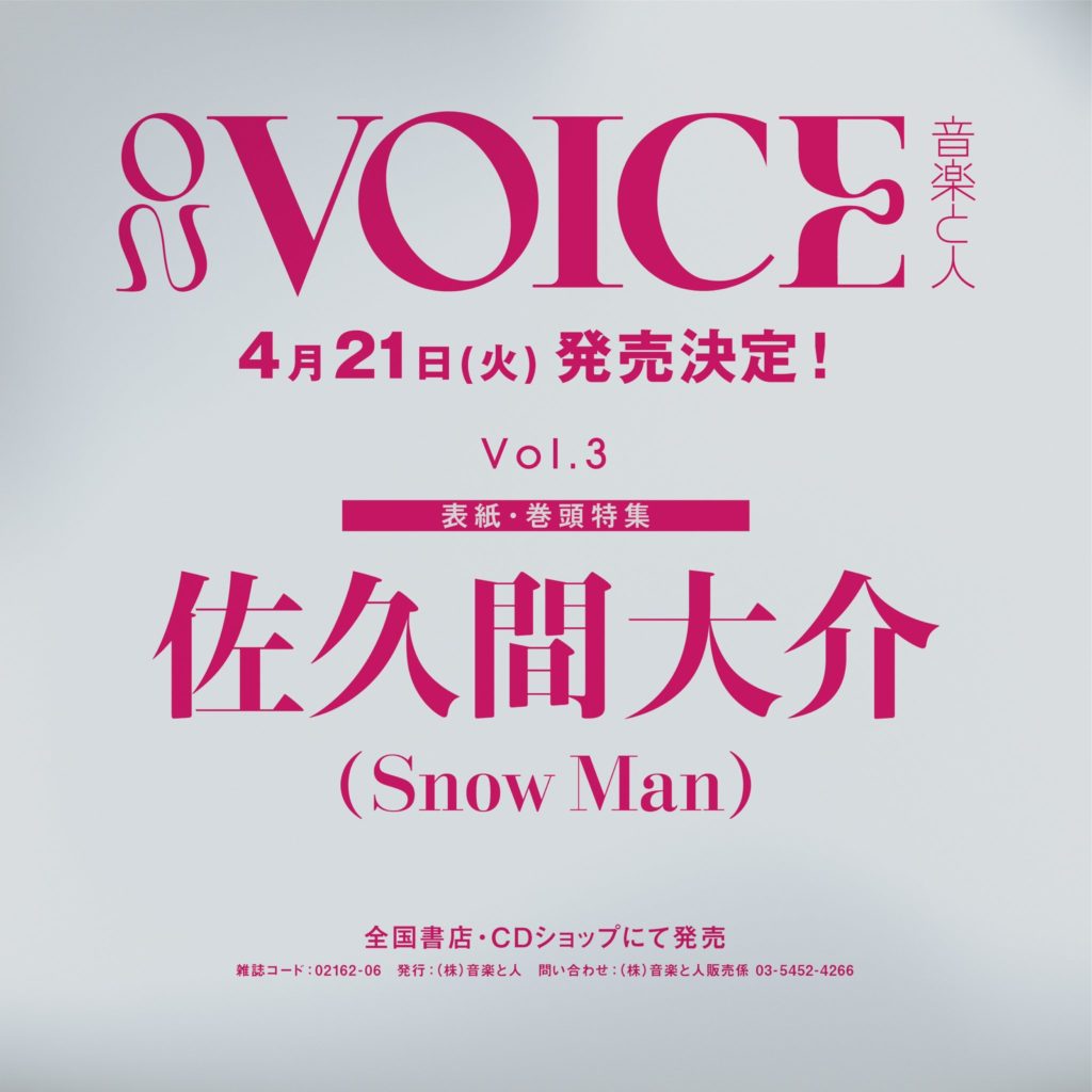 佐久間大介 表紙 4/21発売『ON VOICE』Vol.3 佐久間大介 X LINE コピー 2026.03.19 ◆表紙&巻頭特集佐久間大介(Snow Man) 予約サイト 楽天・Amazon・HMV・タワレコ・セブンネット