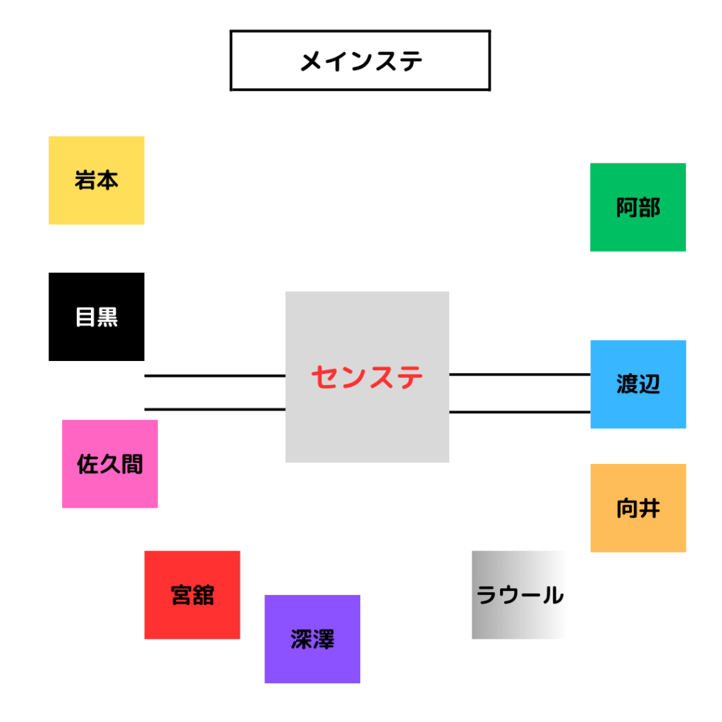 花道に横一列に広がった時、担当の立ち位置だったら最高です!