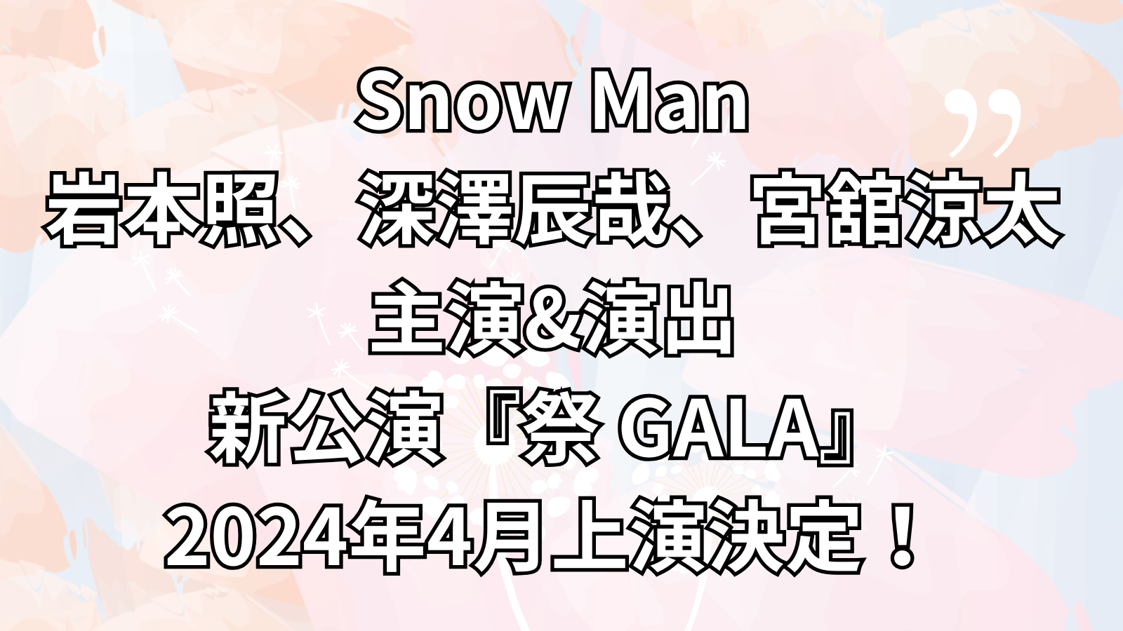 Snow Manの岩本照、深澤辰哉、宮舘涼太が、主演・演出を務める『祭 GALA』が 4月1日から29日まで東京・新橋演舞場にて上演決定!