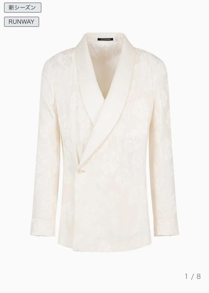 「EMPORIO ARMANI ショールカラー ラップジャケット シルク混紡サテン ラマージュ総刺繍」