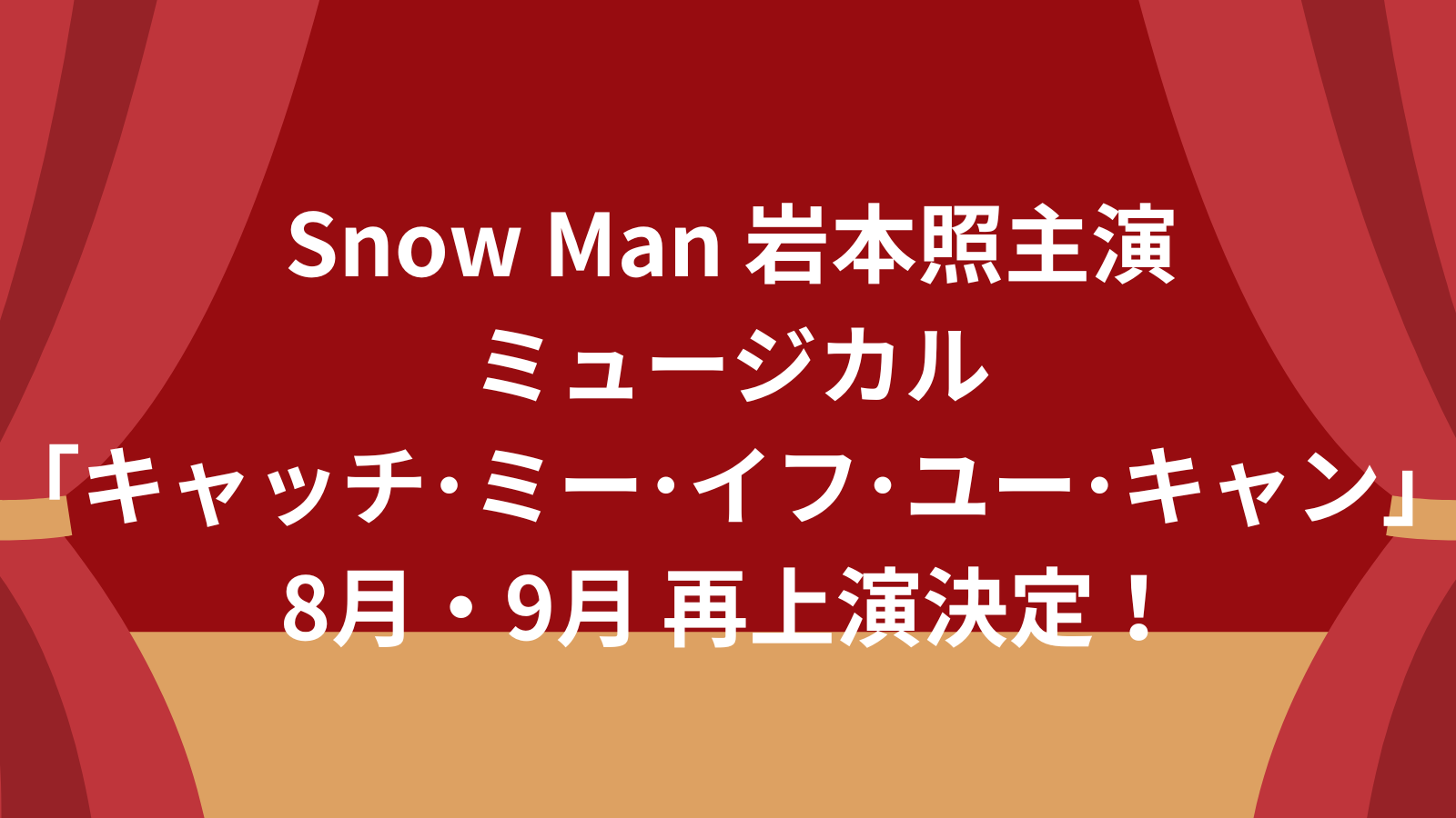 Snow Man 岩本照 主演 ミュージカル『キャッチ・ミー・イフ・ユー・キャン』が、8月・9月に東京国際フォーラムホールC、オリックス劇場にて上演することが決定しました。