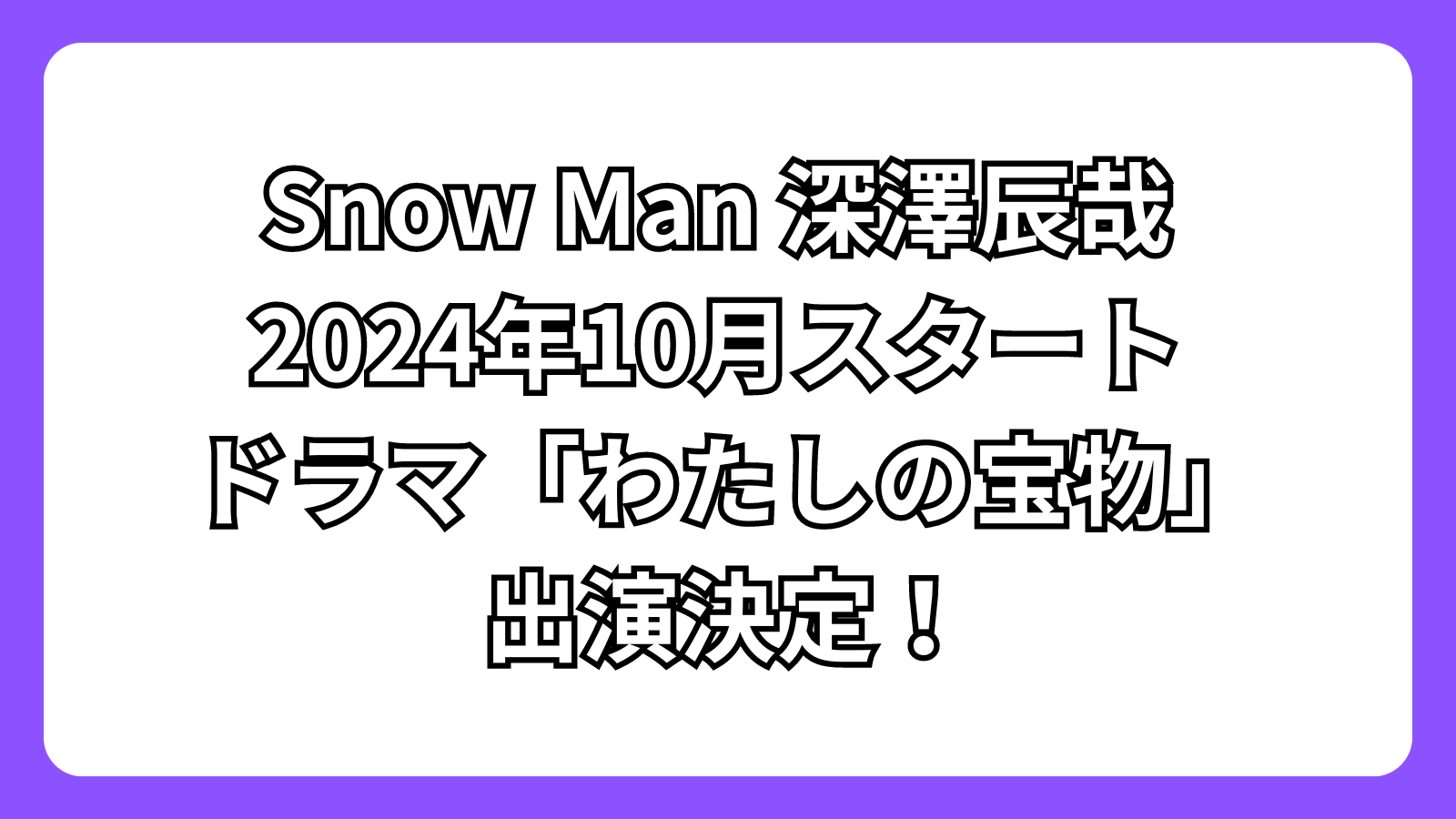 SnowManの深澤辰哉が10月17日スタートのフジテレビ系『わたしの宝物』(毎週木曜 後10:00)に出演することが決定しました。
