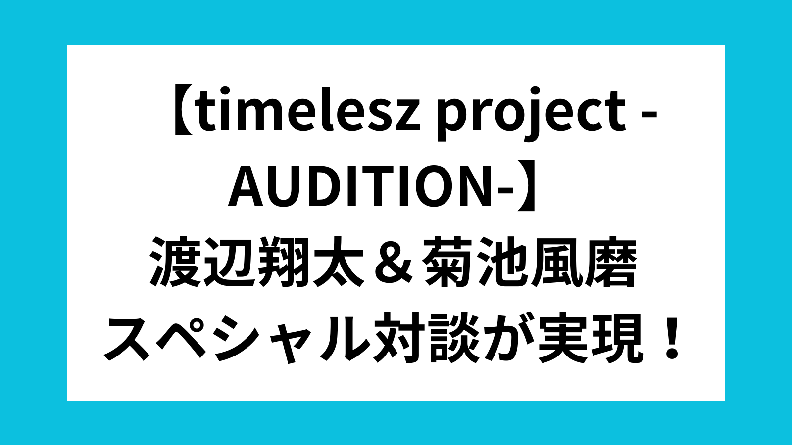 36名に絞られた候補生たちとの3次審査を前に、菊池風磨とSnow Man 渡辺翔太による対談が実現!かつてメンバー増員を経験した渡辺だからこそ語れる、当時の覚悟や想いとはー。